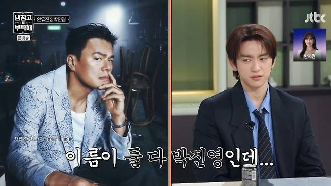 박진영은 JYP엔터테인먼트 수장 박진영과 이름이 같아 겪었던 불편함을 털어놨다. 그는 "어머니가 김치를 자주 보내주시는데, 도착 알림이 와도 물건이 사라져 있었다"며 "알고 보니 PD님이 가져간 경우도 있었다"고 밝혔다. 이에 MC들이 'JYP 박진영 택배를 잘못 받은 적은 없느냐'고 묻자 "그분은 본인 택배를 확실히 챙기신다"고 답해 현장을 폭소케했다.