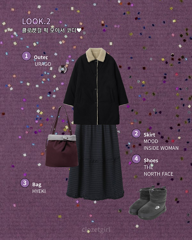아우터는 유라고의 블랙 부분으로 코디!
