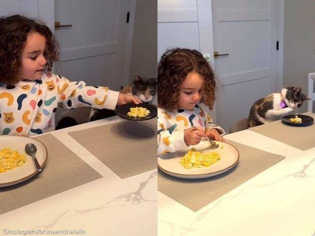 [노트펫] 순수한 '아이 집사'가 한 식탁에서 고양이와 함께 밥을 먹는 모습이 보는 이들을 미소 짓게 한다.