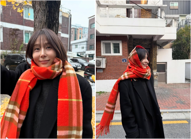 그녀가 선택한 체크 목도리는
