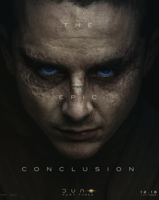 지난 16일(현지시간) 아담 S. 레비 등 주요 외신에 따르면, 티모시 샬라메는 자신의 SNS를 통해 "내일 '듄 3' 트레일러 공개"라는 문구와 함께 한 장의 포스터를 게재했다. 공개된 사진 속 샬라메는 고글을 쓰고 마스크를 착용한 채 푸른 눈으로 카메라를 응시하는 '폴 아토레이데스' 그 자체의 모습으로 등장해 팬들을 열광케 했다.