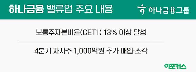 하나금융지주는 이후 자사주 551만여주, 약 3,000억원 규모의 소각 계획을 공시했고 지난달 19일 이를 실행에 옮겼다.