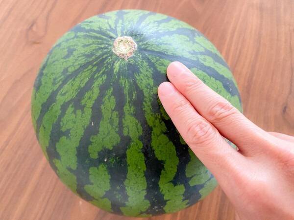 배꼽은 수박 꼭지 반대편에 있는 동그란 부분인데요, 이게 크고 움푹 들어간 모양이면 수박이 덜 익었거나 과육이 물러 있을 확률이 높습니다.