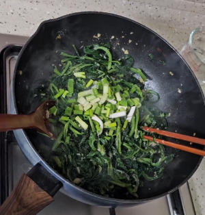 마지막에 송송 썬 파를 넣고 한 번 더 볶아 마무리!