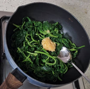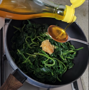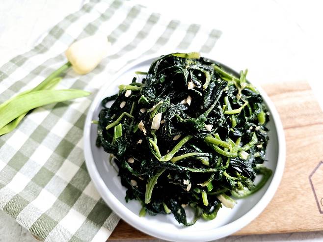 데친 취나물에 다진 마늘, 들기름, 진간장, 액젓을 넣고