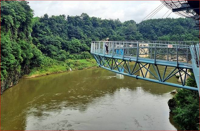 주상절리길을 걷다 보면 만나는 철원 한탄강 스카이전망대는 강 위로 뻗어 있는 유리 바닥 잔도로 조성되어 있어 발아래 펼쳐진 계곡과 협곡을 실감 나게 느낄 수 있는 포인트입니다. 특히 아침과 저녁 시간대에는 햇빛에 반사되는 수면이 유리잔도 아래로 퍼지면서 몽환적인 풍경을 만들어내죠. 포토스폿으로도 강력 추천되는 장소입니다.