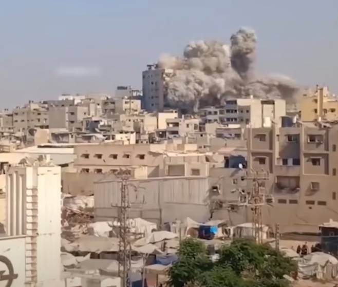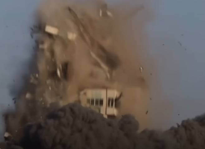 이스라엘 전투기가 발사한 폭격 한방에 가자지구 최고층 빌딩 초토화!