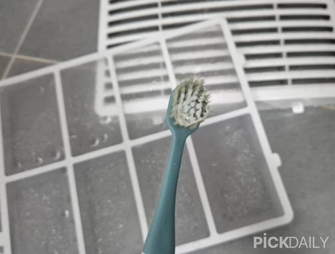 먼저 제습기에서 필터를 분리한 뒤 흐르는 물에 가볍게 헹궈주세요. 눈에 보이는 큰 먼지를 1차로 씻어내는 과정입니다. 이 단계에서 너무 세게 문지르지 않아도 돼요. 큰 먼지를 털어낸 다음에는 안 쓰는 부드러운 칫솔에 중성세제를 조금 묻혀서 필터를 문질러 꼼꼼하게 닦아줍니다.