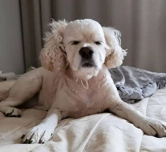 엄마의 발소리에 귀를 쫑긋하고 꼬리를 살짝 흔들긴 했지만 코커는 너무 졸린 나머지 고개를 들 힘조차 없어 보였죠.