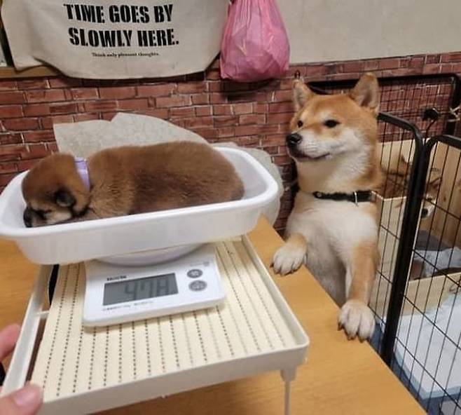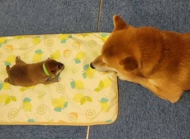 사연은 이렇습니다. SNS상에는 아빠가 된 강아지가 새끼 강아지를 사랑스럽게 바라보고 있는 모습이 담긴 사진이 공개가 된 것.