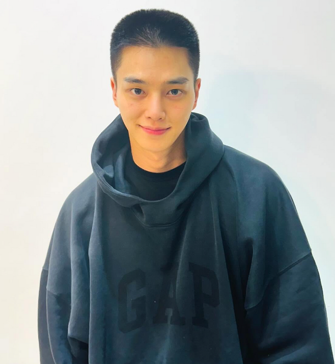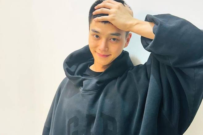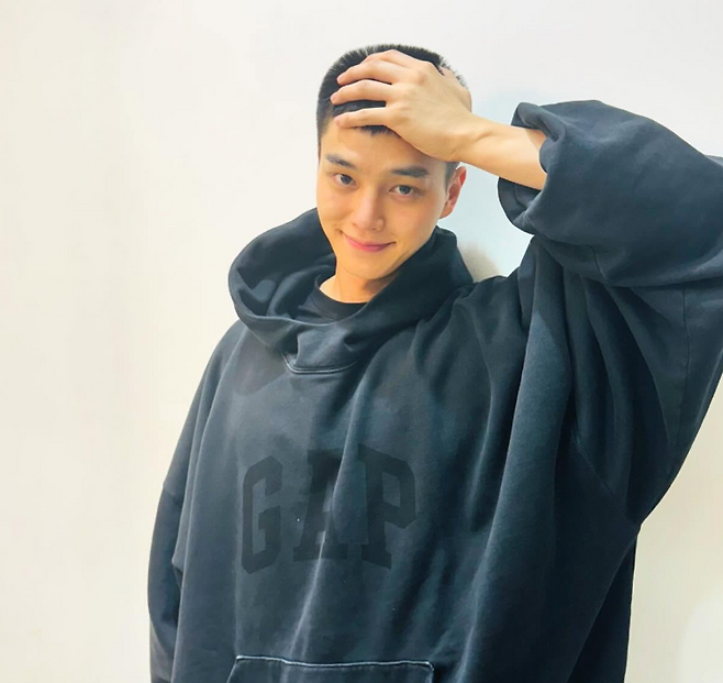 배우 송강이 군 입대를 앞두고 인스타그램에 올린 짧은 머리 사진과 함께 입은 오버핏 후드티가 화제를 모았다.