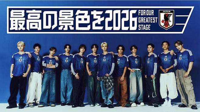 문제가 된 일본 포스터는 JFA가 국가대표 홍보대사 ‘지 블루(Z Blue)’를 모델로 제작한 공식 이미지였습니다. 당초 JFA가 공개한 포스터에는 대표팀의 상징색인 파란색 유니폼을 착용한 12명이 전면에 나란히 배치돼 있었습니다. 문제는 배경 요소였습니다.