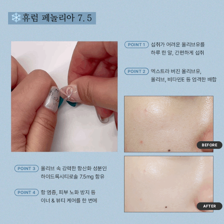 그래서 제대로 내 몸의 건강과 피부까지 다 책임져 줄 '먹는 화장품'을 챙겨 먹는데, 겨울 대비에는 휴럼 페놀리아만한 것이 없다고.