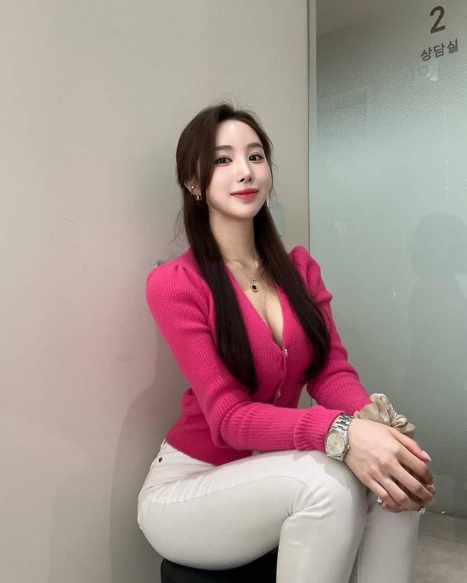 공개된 사진 속 이리안은 선명한 핫핑크 컬러의 니트 카디건을 입고 화사한 분위기를 자아냈다. 깊게 파인 클레비지 라인은 여성스러움을 강조하며, 글래머러스한 실루엣을 더욱 돋보이게 만든다. 여기에 화이트 팬츠를 매치해 경쾌하면서도 세련된 느낌을 연출했다.