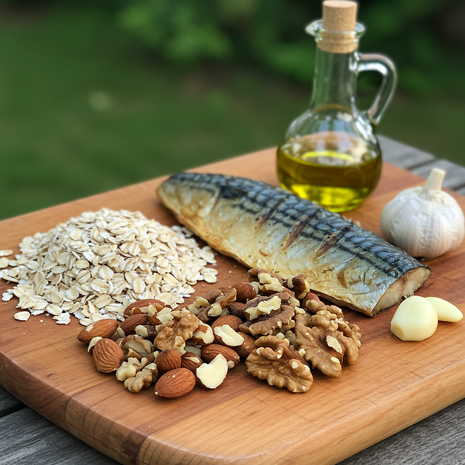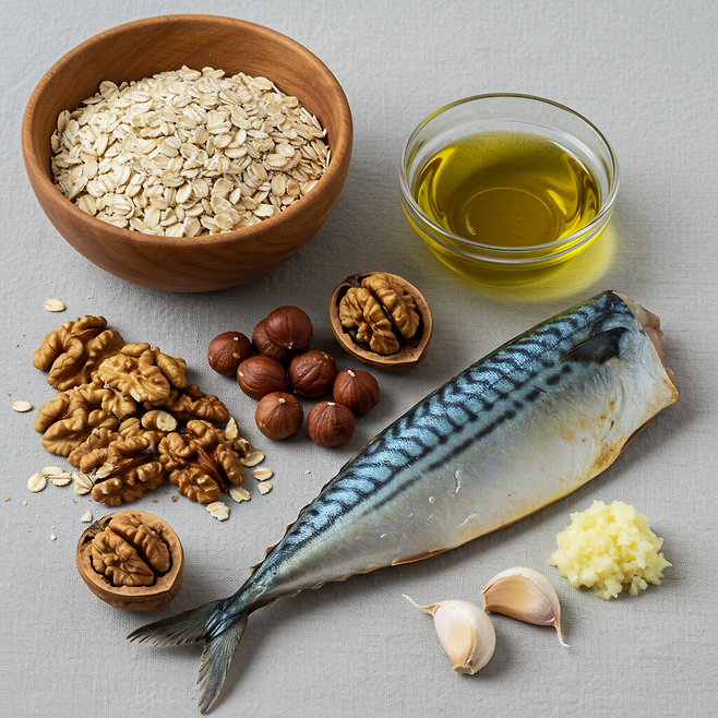 [1] 등푸른 생선 (고등어, 꽁치, 정어리 등)등푸른 생선에는 오메가3 지방산(EPA, DHA)이 풍부하게 들어 있어 혈중 중성지방 수치를 낮추고, LDL 콜레스테롤을 억제하는 데 효과적입니다.