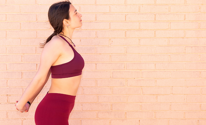 서서 양손을 등 뒤로 깍지 끼고 가슴을 활짝 여는 스탠딩 체스트 오프너는 어깨 말림과 상체의 구부정한 자세를 교정하는 데 효과적이다. 이 동작은 어깨와 가슴 앞쪽 근육을 스트레칭해, 장시간 컴퓨터 앞에 앉아 발생하는 어깨 말림을 완화한다.