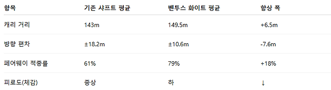 정교한 구질 제어, 장타 성능, 샤프트 안정성, 사용자 피로 경감 등에서