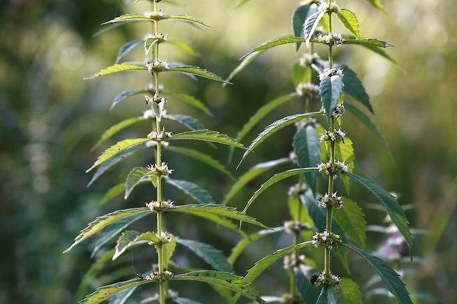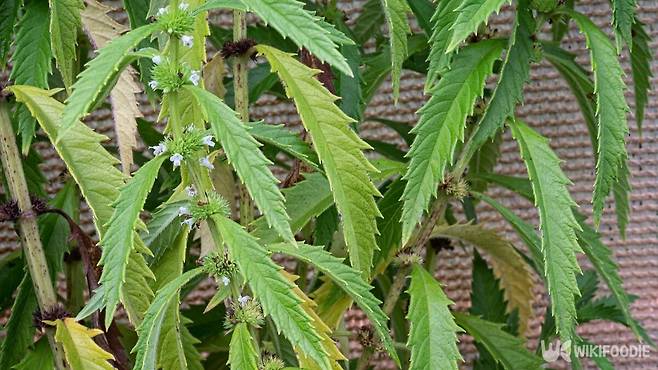 7~8월에는 흰색 꽃이 핀다. 잎겨드랑이에 모여 달리는 이 꽃은 꽃받침은 길이 3mm쯤으로 가운데까지 5갈래로 갈라지고, 샘털이 있다. 꽃부리는 통 형태의 입술 모양이며, 아랫입술은 3개로 갈라진다. 타원형의 열매는 8월쯤에 익는다. 끝 부분이 부푼 땅속줄기는 굵고 흰색이며, 이것이 옆으로 뻗으며 끝부분에서 새순이 돋는다.