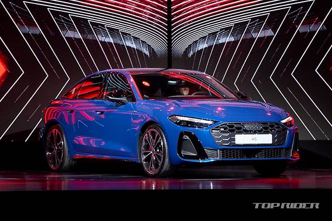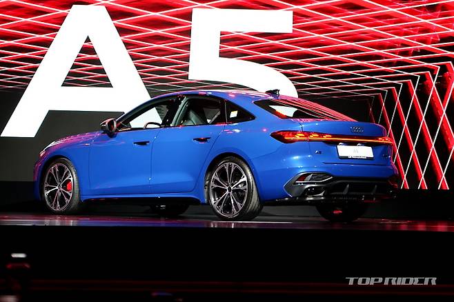 신형 아우디 A5는 이전 세대 대비 전장 65mm, 전폭 15mm, 전고 25mm가 확대됐다. 쿠페 스타일의 매끈하게 떨어지는 루프라인과 후면 유리까지 모두 열리는 디자인의 테일게이트가 특징이며, 아우디 최초의 투명도 조절이 가능한 스위처블 파노라믹 루프가 전 트림 기본으로 적용된다.