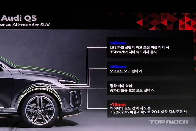 Q5 40 TDI 콰트로에는 울트라 콰트로(Ultra quattro)와 7단 자동 S 트로닉 변속기가 기본 탑재된다. 최고출력 204마력, 최대토크 40.8kgm, 복합연비 12.7km/ℓ(도심 12.3, 고속 13.1)다. 가격은 Q5 40 TDI 콰트로 어드밴스드 6968만원, S-라인 7557만원, S-라인 블랙 에디션 7950만원이다.