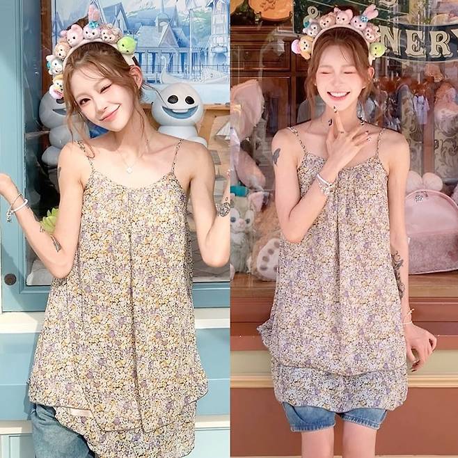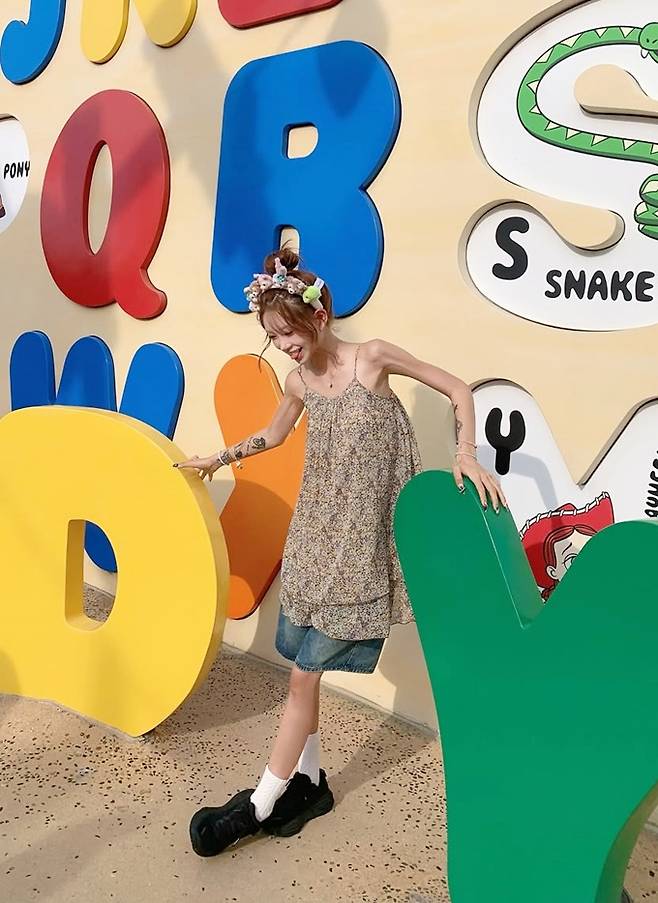 공개한 사진에서 최준희는 잔잔한 파스텔 컬러의 플라워 패턴이 돋보이는 슬립 스타일의 루즈 핏 나시 미니 원피스룩으로 로매틱한 무드를 연출했다.