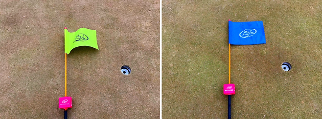 파주 cc는 앞 핀을 빨강, 중 핀을 파랑, 백 핀을 노랑으로 구분 지어 사용한다고 캐디님이 말씀해 주셨는데 이날 중 핀과 백 핀의 경계가 애매해서 정확한지는 모르겠습니다. 아시는 분은 댓글로 부탁드립니다.