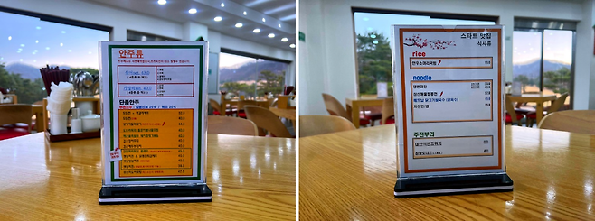 아침으로는 무국, 해장국 등을, 점심에는 찌개와 비빔밥류를 다른 골프장에 비해 조금 비싼 가격에 판매하고 있습니다.