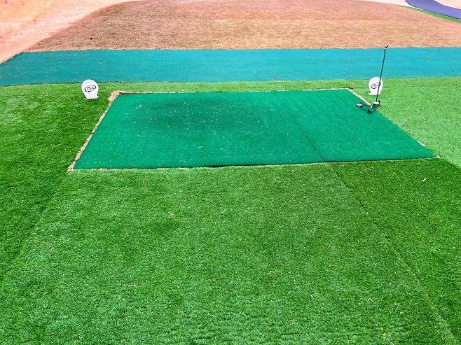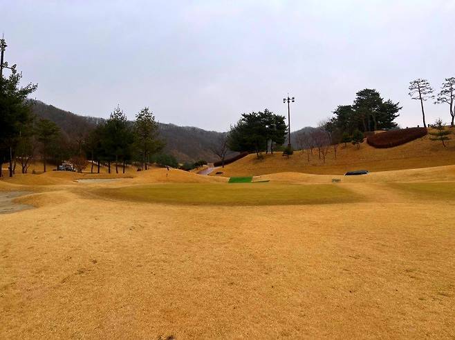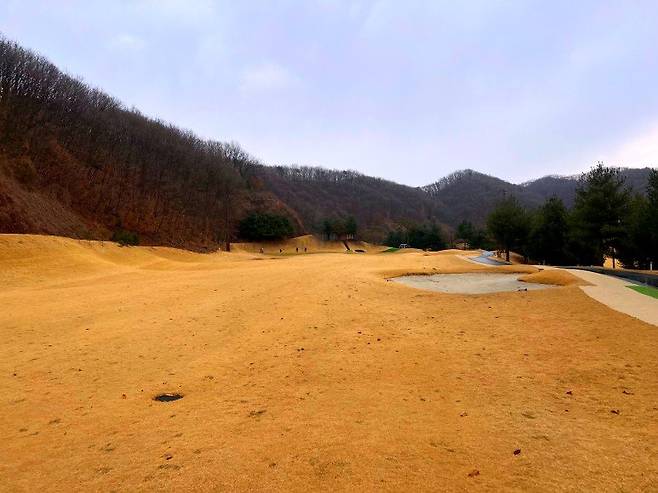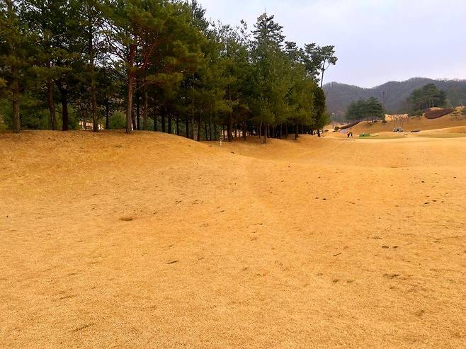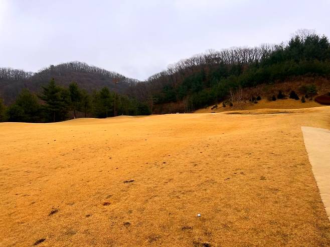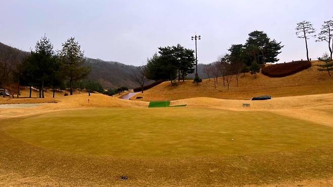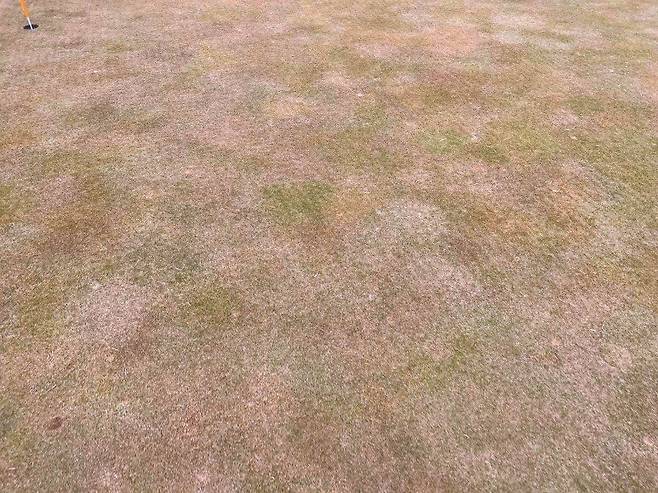 페어웨이와 마찬가지로 조선 잔디의 중지를 사용 중이고 페어웨이보다는 조금 길게 관리되고 있습니다. 길이는 30-40mm 정도로 생각하시면 될 것 같고 주요 랜딩 지점에는 페어웨이와 비슷한 디봇 자국이 있었습니다.