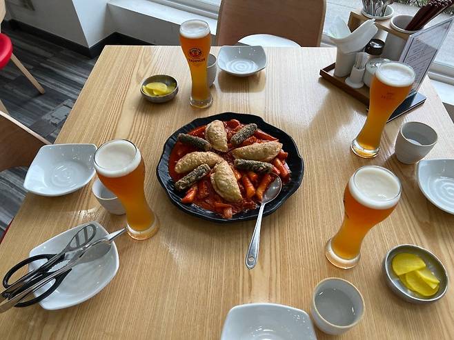저희 팀은 맥주와 함께 떡볶이를 시켜 먹었는데 맛은 평균 정도였습니다.