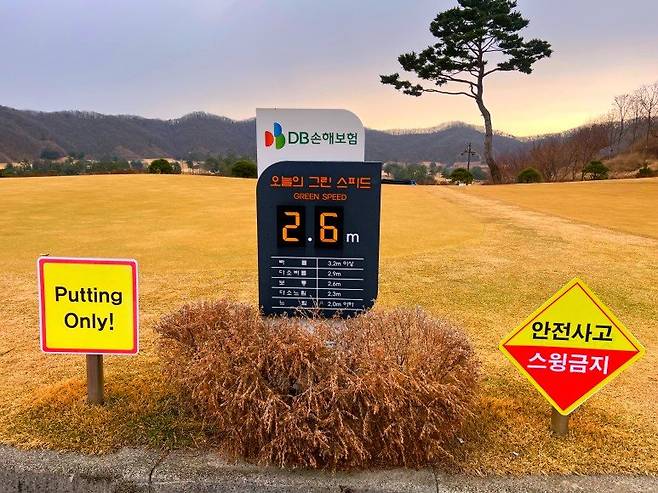 스타트 지점에 별도의 공지대로 이날 그린 스피드는 2.6m 정도로 보통 빠르기 수준이었습니다. 그린에 그늘진 부분이 없어 모든 홀에서 비슷한 스피드를 보였습니다.