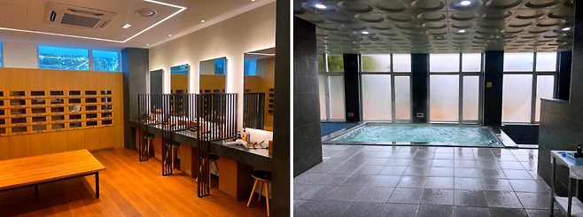 라커룸도 리셉션과 비슷한 분위기로 어딘가 차분하고 정갈한 느낌입니다. 남녀 라커룸 모두 리셉션에서 한층 내려오면 준비되어 있습니다.