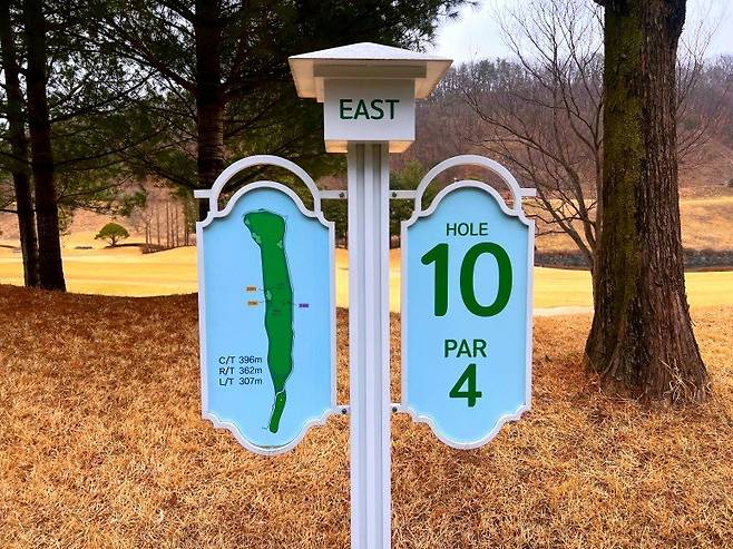 티잉 구역에 코스 맵이 그려진 별도의 안내판이 준비되어 있습니다.