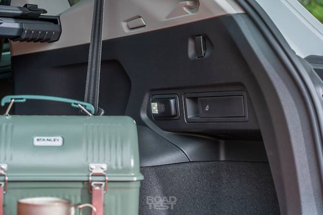 티구안 올스페이스가 캠핑과 어울리는 이유는 또 있다. 트렁크 양쪽에 자리한 230V 전원과 탈착식 랜턴 때문이다. 그중에서도 230V 전원은 커피포트 등 전기제품을 연결해 쓸 수 있어 쓰임새가 좋다. 단순히 트렁크를 넓히는 데 그치지 않고 디테일까지 챙겼다. 일반 티구안에서는 선택할 수도 없는 옵션이다.