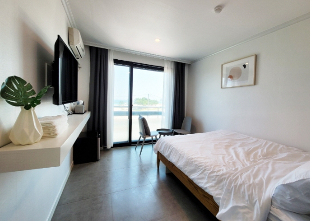 4층 건물에 더블룸, 트윈룸, 한실 등 다양한 타입의 객실이 준비되어 있어요. 특히 가족 단위 여행객에게 인기가 많아요. 로비에는 생수, 커피머신, 제빙기 등이 갖춰져 있어 자유롭게 이용할 수 있어요. 숙소 앞과 뒤에는 넉넉한 주차 공간이 마련되어 있어 차량 이용이 편리하답니다. 바닷가에서 놀다 들어오면 모래를 씻어낼 수 있는 수도시설도 구비되어 있어요.
