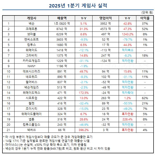 분위기를 반전시킬 신작 준비에 매진 중인 대부분의 게임사는 부진한 성적표를 받았다. 20개사 중 6개사가 적자를 기록했고, 3개사는 영업이익이 반토막 났다. 주요 게임사의 1분기 실적을 살펴보고, 2분기 실적도 엿봤다.