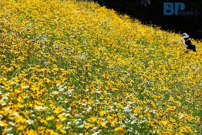 수도권에서 주말 드라이브 코스를 찾는다면, 날씨 맑은 날 광교 저수지 인근을 거닐면서 화사하게 피어난 금계국 언덕을 만나보자.