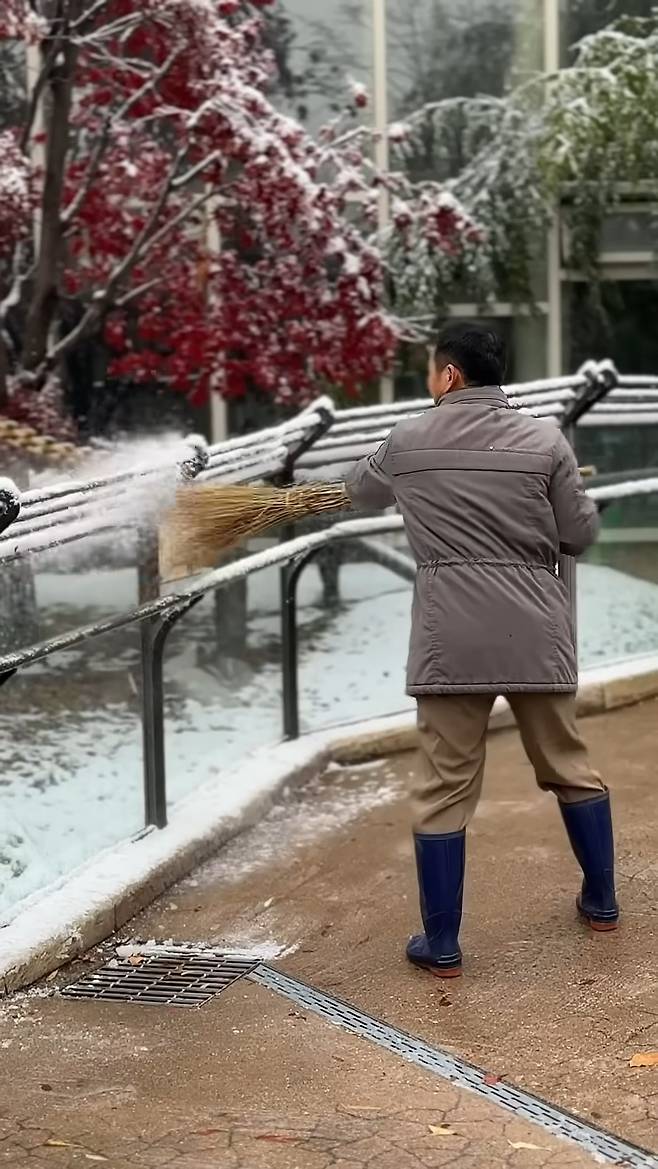 '강바오' 강철원 사육사가 판다들의 아침 방사를 준비하며 시원하게 난간의 눈을 쓸어내리는 영상이 공개되자 기대는 커져갔는데요. 혹여 오늘도 루이바오가 외출거부를 할까 조마조마하던 것도 잠시, 다행히 두 아기판다 모두 밖에 놀러갔다고 해요.