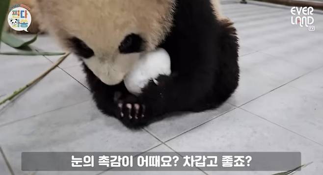 당시 루이바오는 눈덩이를 요리조리 만지며 갖고 놀기도 하고, 품에 안기도 하며 호기심을 드러냈는데요. 이번에도 그때처럼 눈을 좋아하는 듯하네요.