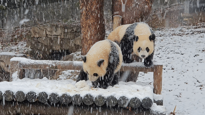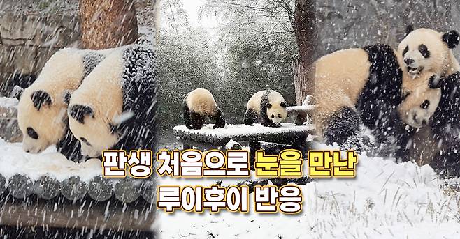 "쌍둥이 아기 판다 루이바오와 후이바오가 판생 처음으로 눈을 맞겠구나!"