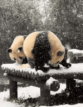 첫눈을 본 루이후이의 반응을 지켜보던 팬들은 "애기들 정말 신난 것 같다", "하얀 눈과 보니 우리 둥이들 정말 누룽지였구나", "너무 귀여워서 일을 못하고 있다", "눈 펑펑 내리는 거 보니 푸바오 생각이 많이 난다" 라는 반응을 보였답니다.
