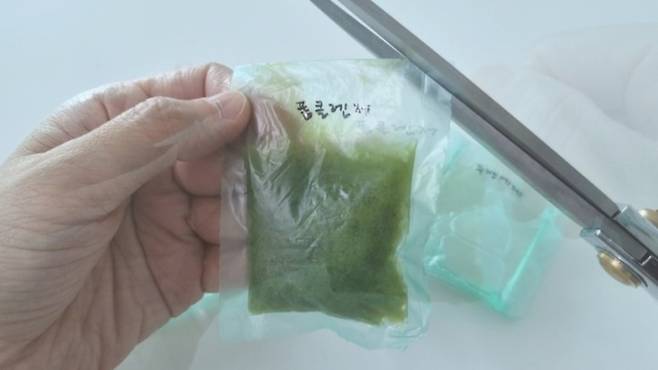 사용 시에는 모서리를 조금 찢거나 자른 다음 짜서 사용해요.