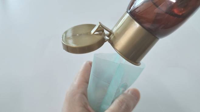 여기에 바디워시, 주방 세제, 샴푸 등을 담으면 여행, 캠핑, 외출 시 일회용으로 사용하기 좋아요.