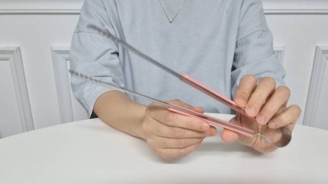 이때 고데기의 온도 조절 기능이 없거나 시간 조절이 어려서 비닐이 자꾸 오그라든다면 종이 호일을 대고 접착 상태를 확인하면서 밀봉해 주세요.