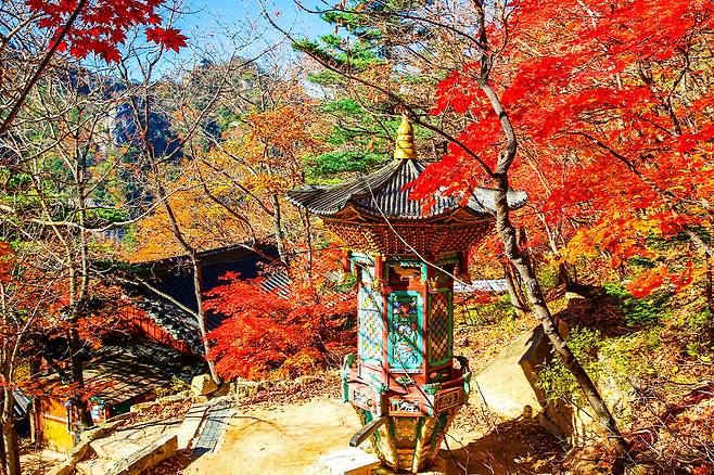 설악에서 가장 드높은 장소에 자리한 백담사의 부속 암자로 석가모니의 진신사리를 모신 적멸보궁인 만큼 특별한 분위기와 풍경을 자랑합니다.