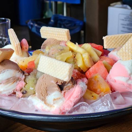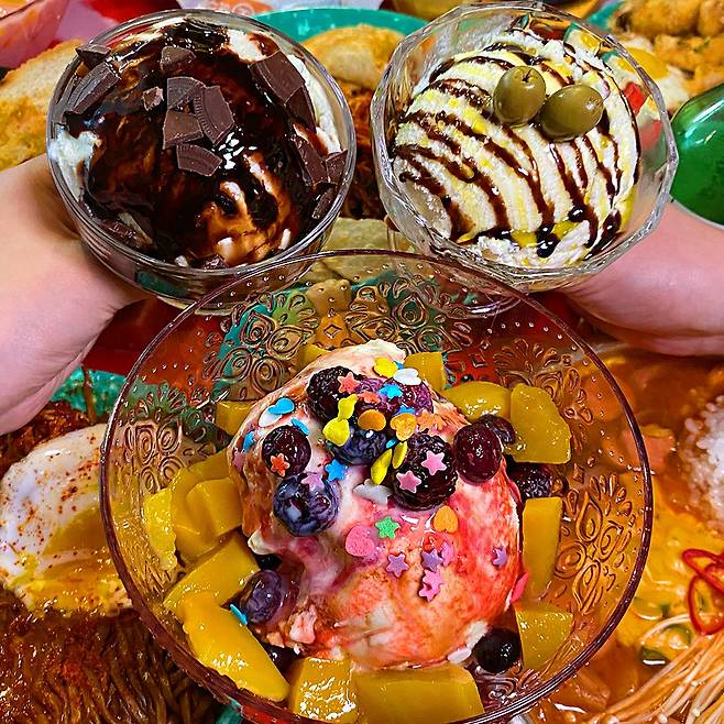 올해 신촌에 상륙한 유명한 레트로 술집. 홍콩 주점 콘셉트로 번쩍 번쩍한 네온 사인이 내부를 차지하고 있어 이국적이다. 이 집에서 주목해야 될 점은 무려 70개가 넘는 메뉴. 무엇을 고를지 고민이 된다면 단골들이 추천하는 ‘콘치즈 김치볶음밥’을 시켜보자. 아낌없이 콘 한 통 다 부은 콘치즈 위에 매콤한 김치볶음밥을 가득 올려줘 소주와 잘 어울린다. 이곳은 푸짐한 인심으로도 알려져 있는데, 마지막에 메인 안주 만큼이나 양이 많은 과일 화채를 서비스로 주신다. 아이스크림에, 웨하스, 각종 과일이 골고루 들어가 입가심하기 딱 좋다. 다 먹고 불량식품 코너에서 맥주 사탕 하나 물고 나가는 것도 잊지 말자.