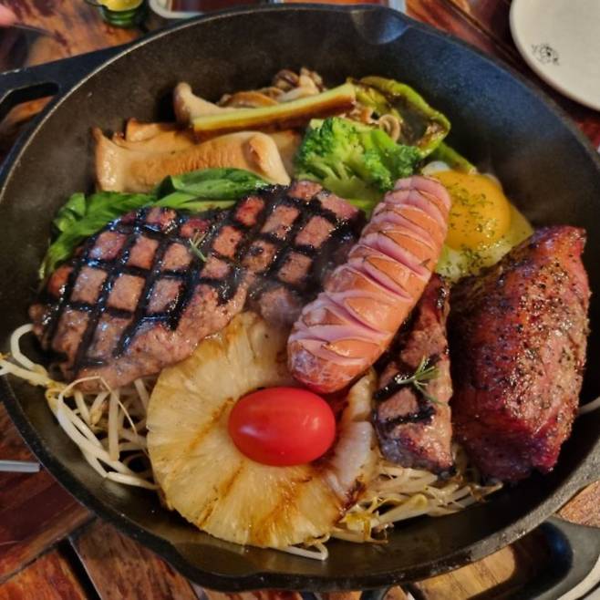 인테리어부터 메뉴판, 심지어 테이블에 놓인 냅킨용 파인애플 캔까지, 레트로한 분위기를 풍기는 이곳. 무엇보다 일반적인 주점과 달리 메인 안주류가 딱 하나다. 오직 바비큐 스테이크 세트. 훈제 통삼겹살과 등심 스테이크의 조합 하나만 있기 때문에 안주 고민으로 시간을 보내지 않아도 된다. 조금 느끼할 때쯤 가게 한 켠에 위치한 라면 코너에서 먹고 싶은 종류로 골라 보자. ‘역시 남이 끓여준 라면이 제일 맛있다’라는 말이 절로 나올 정도로 라면을 기가 막히게 끓여 준다.