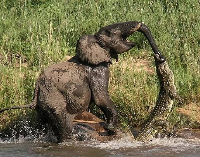 악어는 계속되는 코끼리의 공격에 도저히 안되겠다 싶었는지 결국 입을 벌려 코를 놓아줬다고 하는데요.