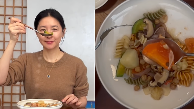 영상 속 그녀의 식탁에는 토마토·애호박·당근을 넣은 채소 파스타, 삶은 달걀, 그리고 사과에 땅콩버터를 발라 놓은 접시가 보였어요. "역시 이영애답다"는 댓글이 쏟아졌죠.