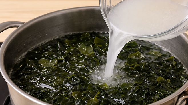 미역국을 담백하게 끓이고 싶다면 쌀뜨물을 활용하는 방법이 있습니다. 특히 두 번째나 세 번째 쌀뜨물을 사용하면 전분 성분 덕분에 국물이 부드럽고 구수해집니다.