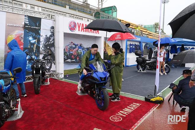 다양한 행사들이 진행되는 무대와 그 뒤로 다양한 야마하의 모터사이클 모델들이 전시된 전시장이 준비됐다. 비가 오지 않았으면 더욱 좋았겠지만 참가자들은 비가 왔어도 다양한 모터사이클을 구경하며 행사를 즐겼다. 비가 오지 않았으면 더 많은 사람들이 왔을 테지만 참석한 사람들은 날씨에 상관없이 야마하 패밀리 페스티벌이 준비한 다양한 이벤트들을 즐기며 즐거운 시간을 보내는 모습이었다. 행사장 곳곳에 마련된 게임 이벤트에는 참가자들의 줄을 서 자신의 순서를 기다리는 모습을 쉽게 찾아볼 수 있었고 일부 인기 게임의 경우 줄이 길어 다른 게임으로 대기인원을 분산시키는 모습도 볼 수 있었다. 그 정도로 참가자들은 적극적으로 참가하며 즐거운 시간을 보냈고 날씨는 크게 중요하지 않은 모습이었다.